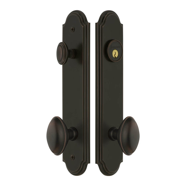 During their renovation, they faced issues with their exterior doors, including a broken knob that could only be opened with pliers and a front door hardware set that had peeling finishes. In her search for new hardware, Ashley desired high-quality, beautiful pieces that would complement the Tudor-style home while offering durability. After extensive research, they chose Grandeur Hardware for its solid brass construction and timeless designs, ultimately selecting the Arc Tall Plate Entry Set with the Eden Prairie Knob in Timeless Bronze. Ashley was particularly drawn to the egg-shaped knob, which added character and uniqueness to the overall look, and was further enticed by a finish that would not peel over time.