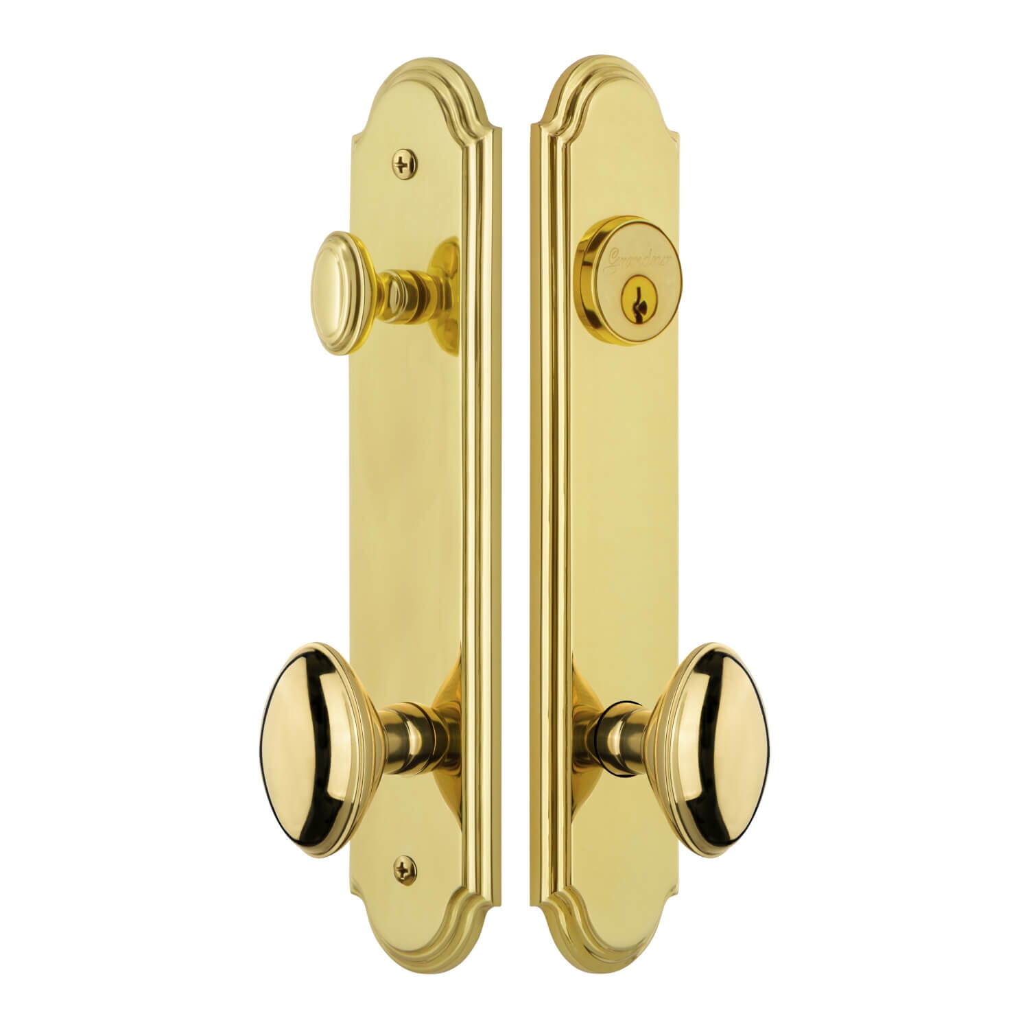 The Arc Collection features Short Plates and Tall Plates with waterfall edges and graceful curves at the top and bottom, providing a classic but dignified update to both your interior and exterior doors.
