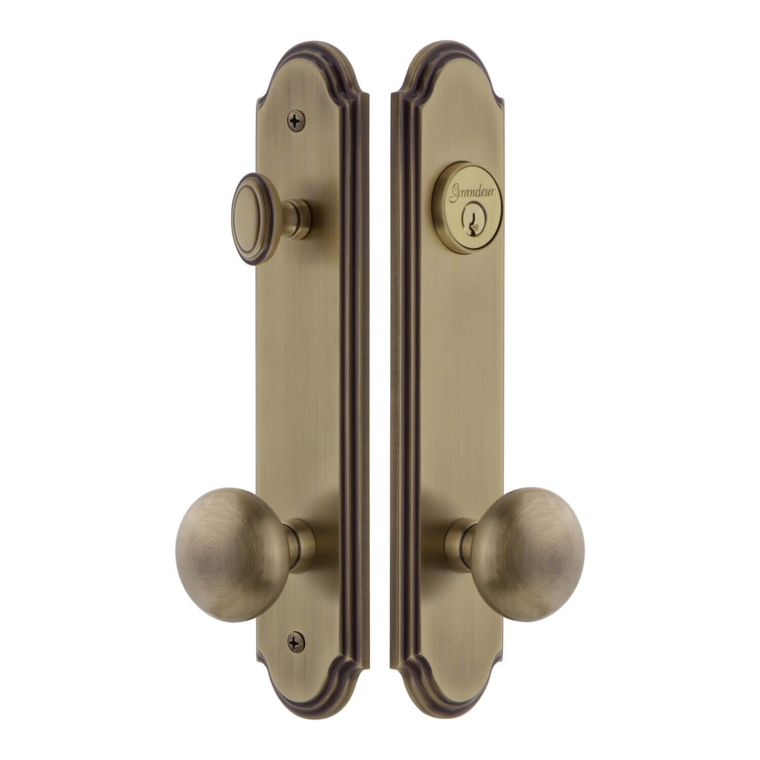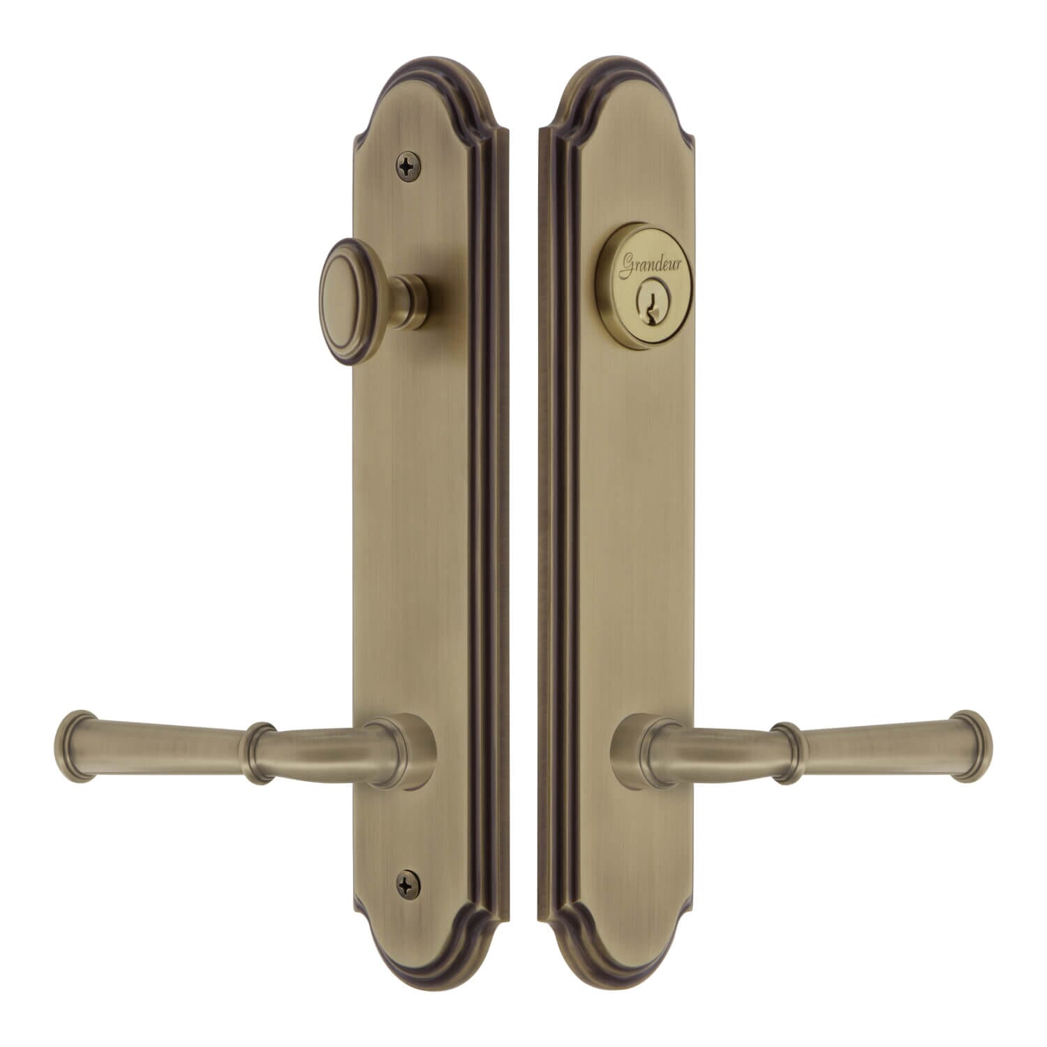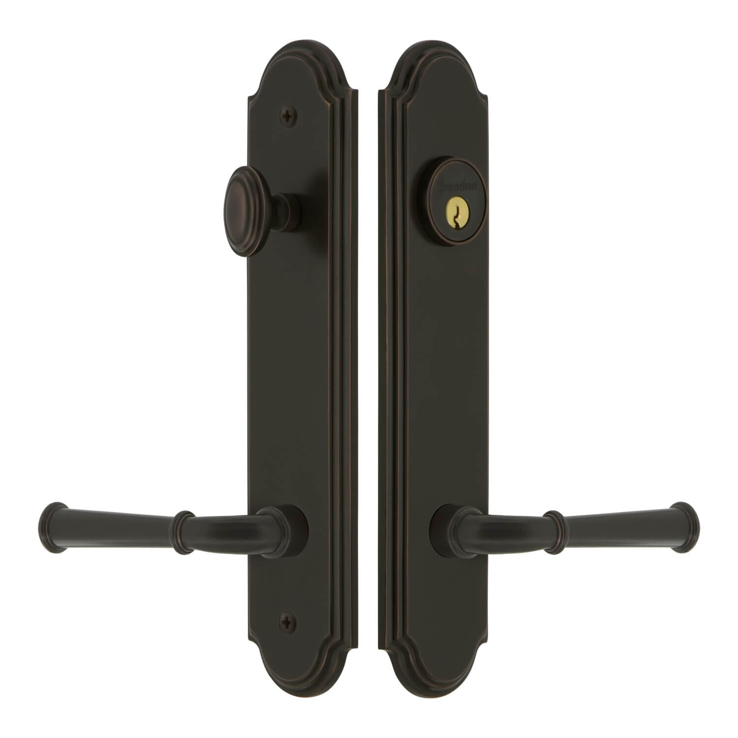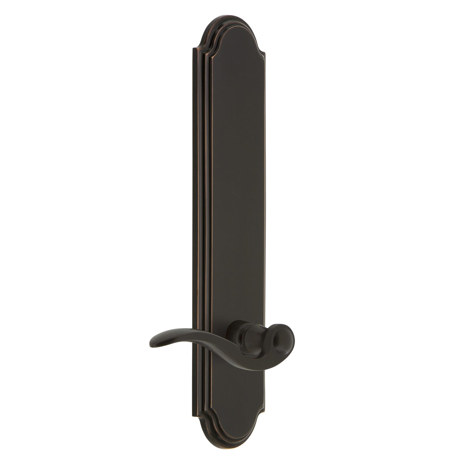 The Arc Collection features Short Plates and Tall Plates with waterfall edges and graceful curves at the top and bottom, providing a classic but dignified update to both your interior and exterior doors.