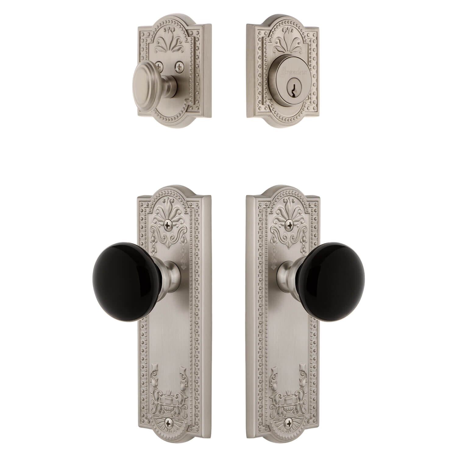 Collections: All Black Hardware Entry Sets Parthenon Satin Nickel